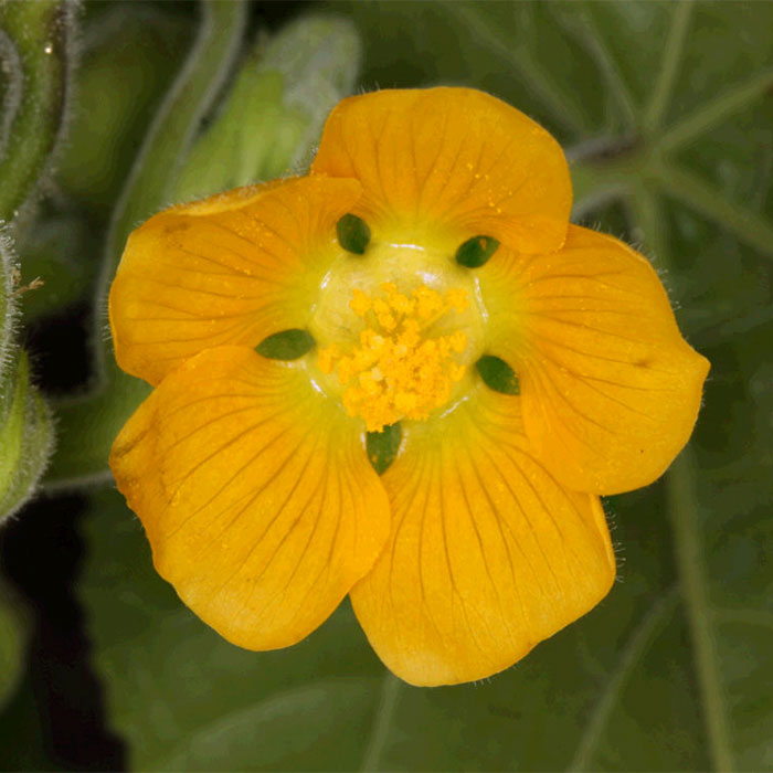 Large heart-shaped, leaves which are velvety and soft (hence the name velvetleaf). Leaves are also clammy to the touch and smelly